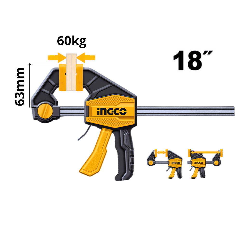 Prensa Rapida Auto Ajustable 18" Soporta 60 Kg Ingco HQBC01603
