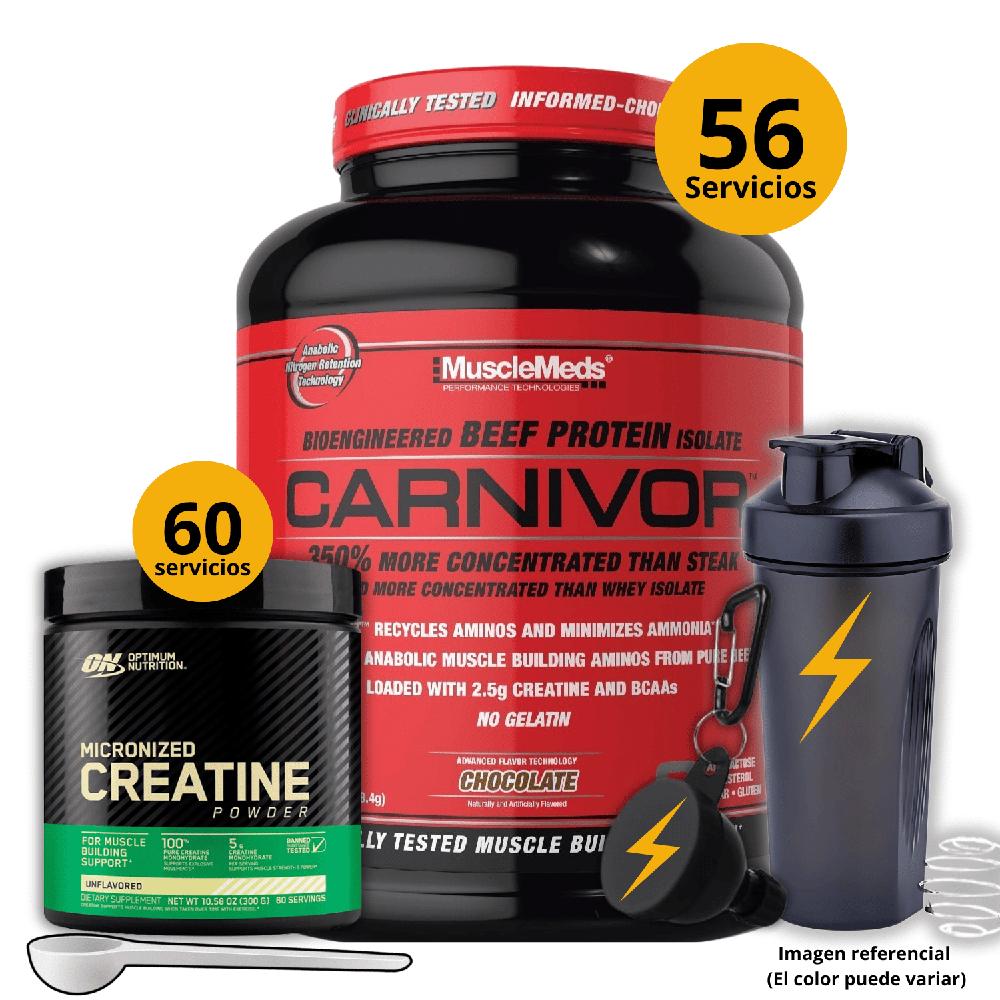 Proteína Carnivor isolate de 4lb Chocolate - Creatina Optimum Nutrition de 300gr - regalos