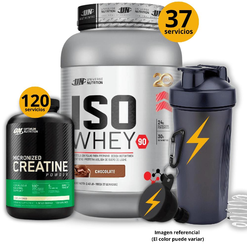 Proteína Iso whey 90 de 1kg Chocolate - Creatina Optimum Nutrition de 600gr - regalos