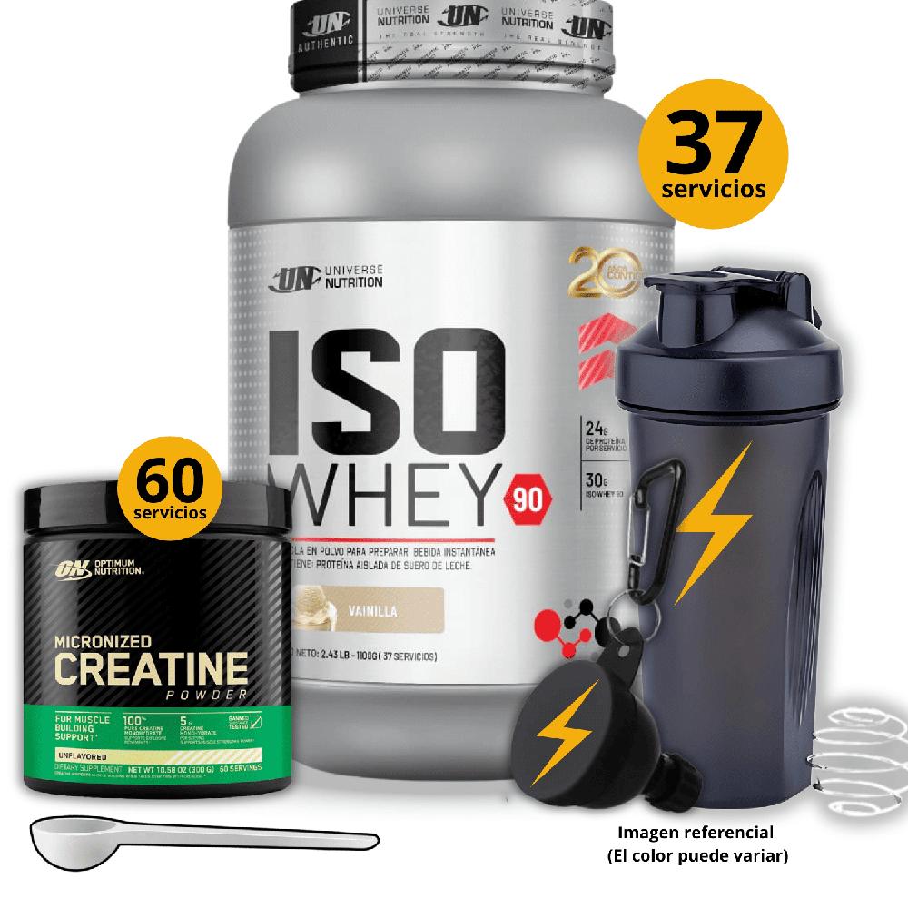 Proteína Iso whey 90 de 1kg Vainilla - Creatina Optimum Nutrition de 300gr -regalos