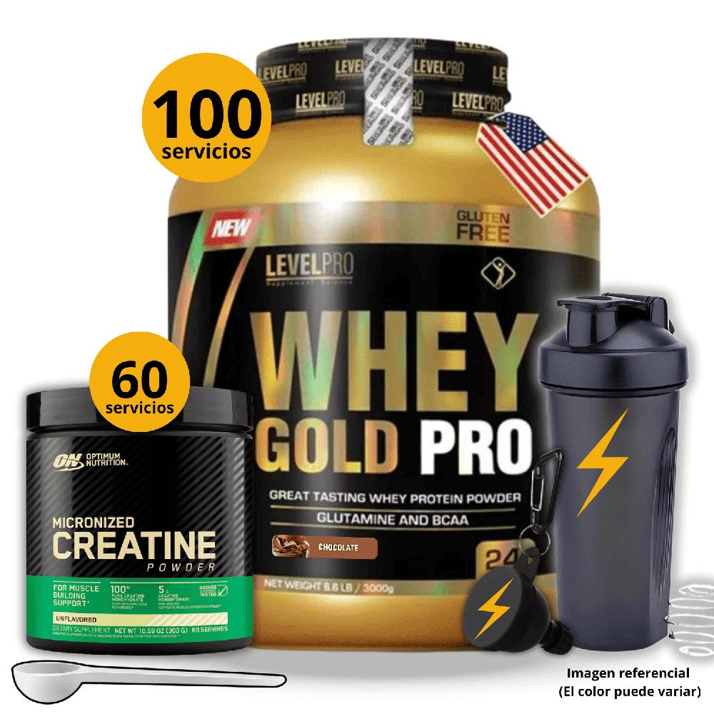 Proteína Whey gold pro de 3kg Chocolate - Creatina Optimum Nutrition de 300gr - regalos