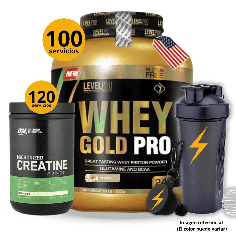 Proteína Whey gold pro de 3kg Vainilla - Creatina Optimum Nutrition de 600gr -regalos