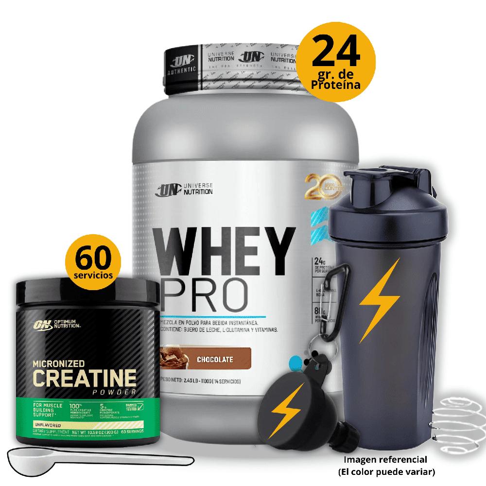 Proteína Whey pro de 1000g Chocolate - Creatina Optimum Nutrition de 300gr regalos