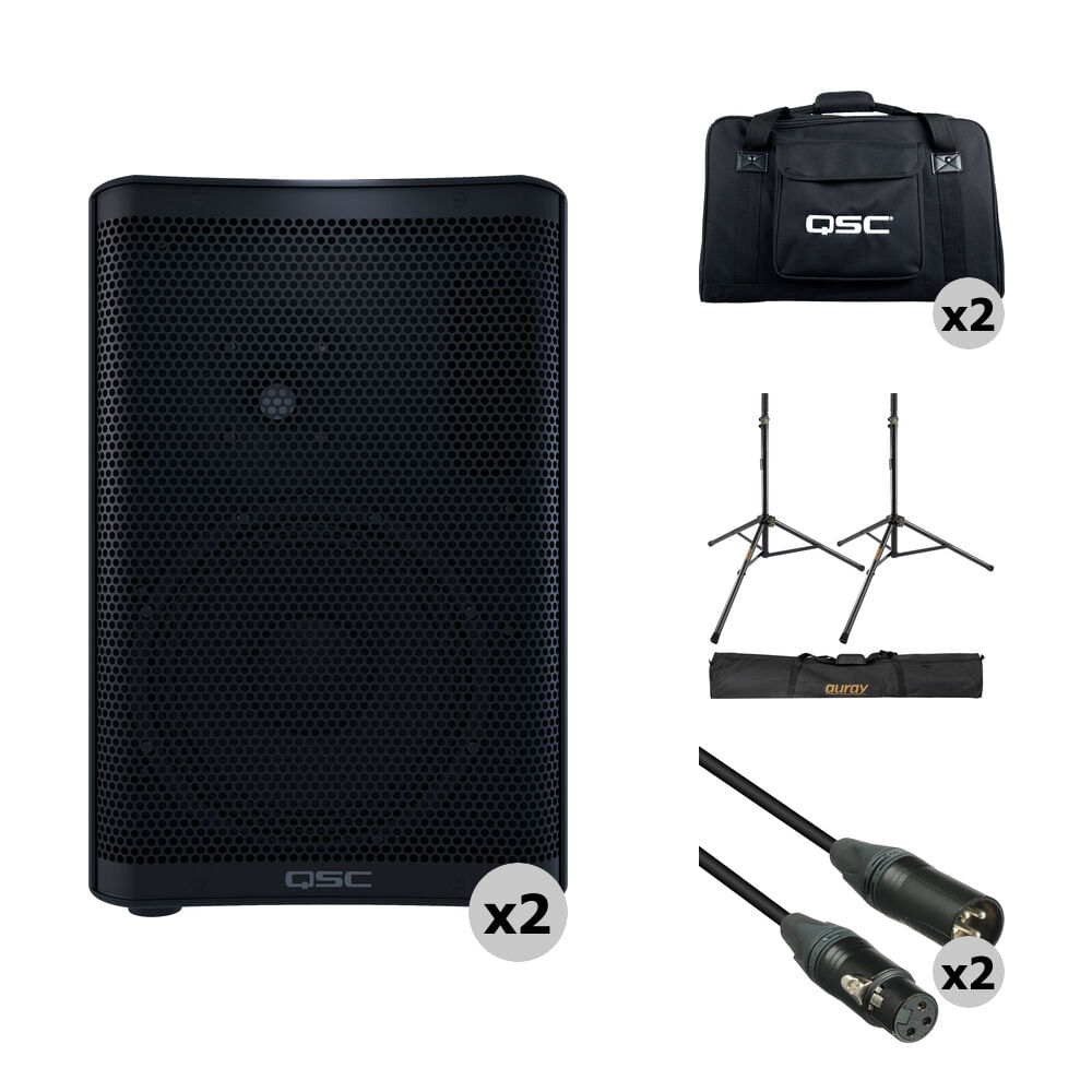 QSC CP8 Compact Loudspeakers with Bags, Stands, and Cables Kit (Pair) - 1462675-REG