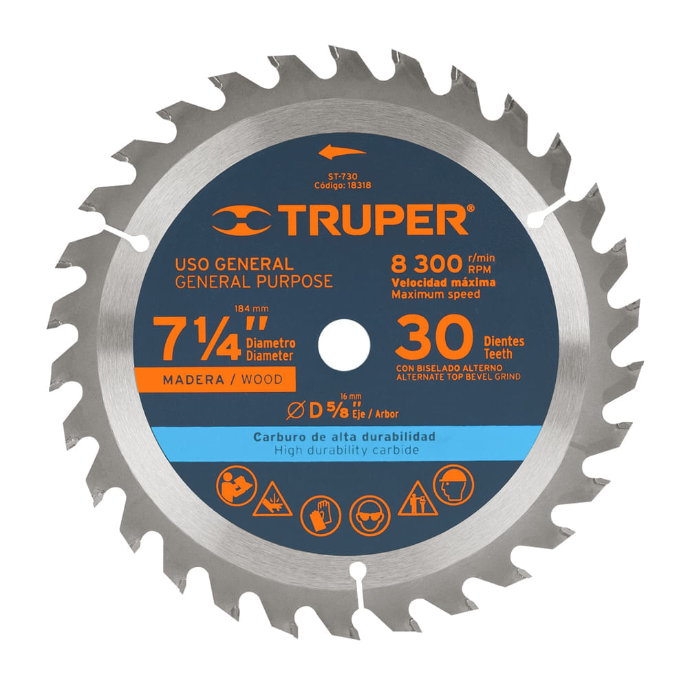 Disco Sierra Circular 7 1/4" X 5/8" 30 P/MA Truper 18318