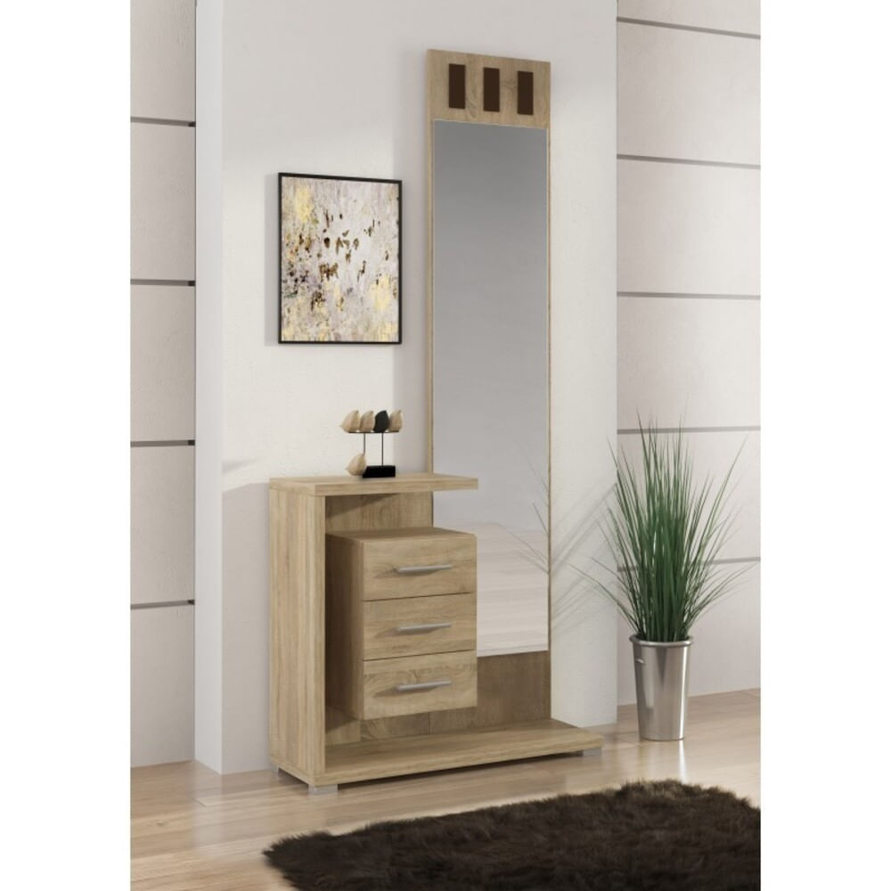 Recibidor con Espejo alto Prisma 3 cajones color Natural TU MESITA