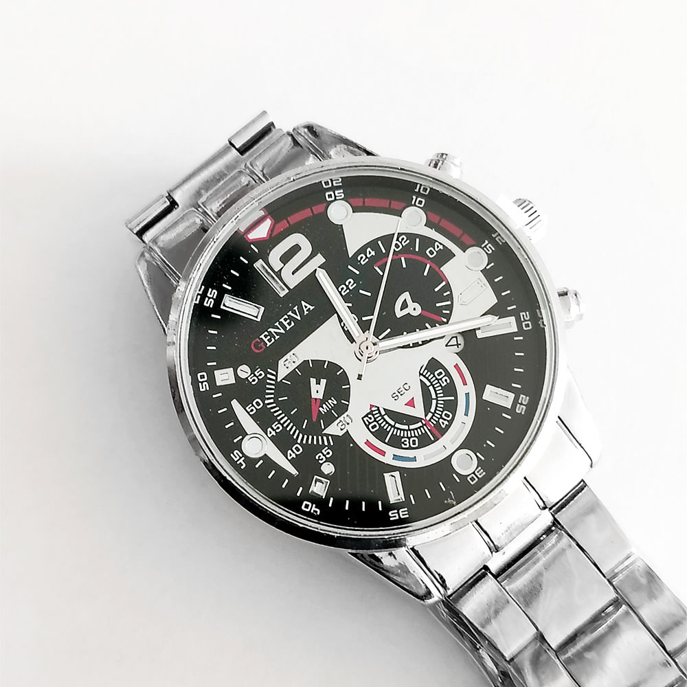 Reloj de pulsera a pilas de acero inoxidable plateado