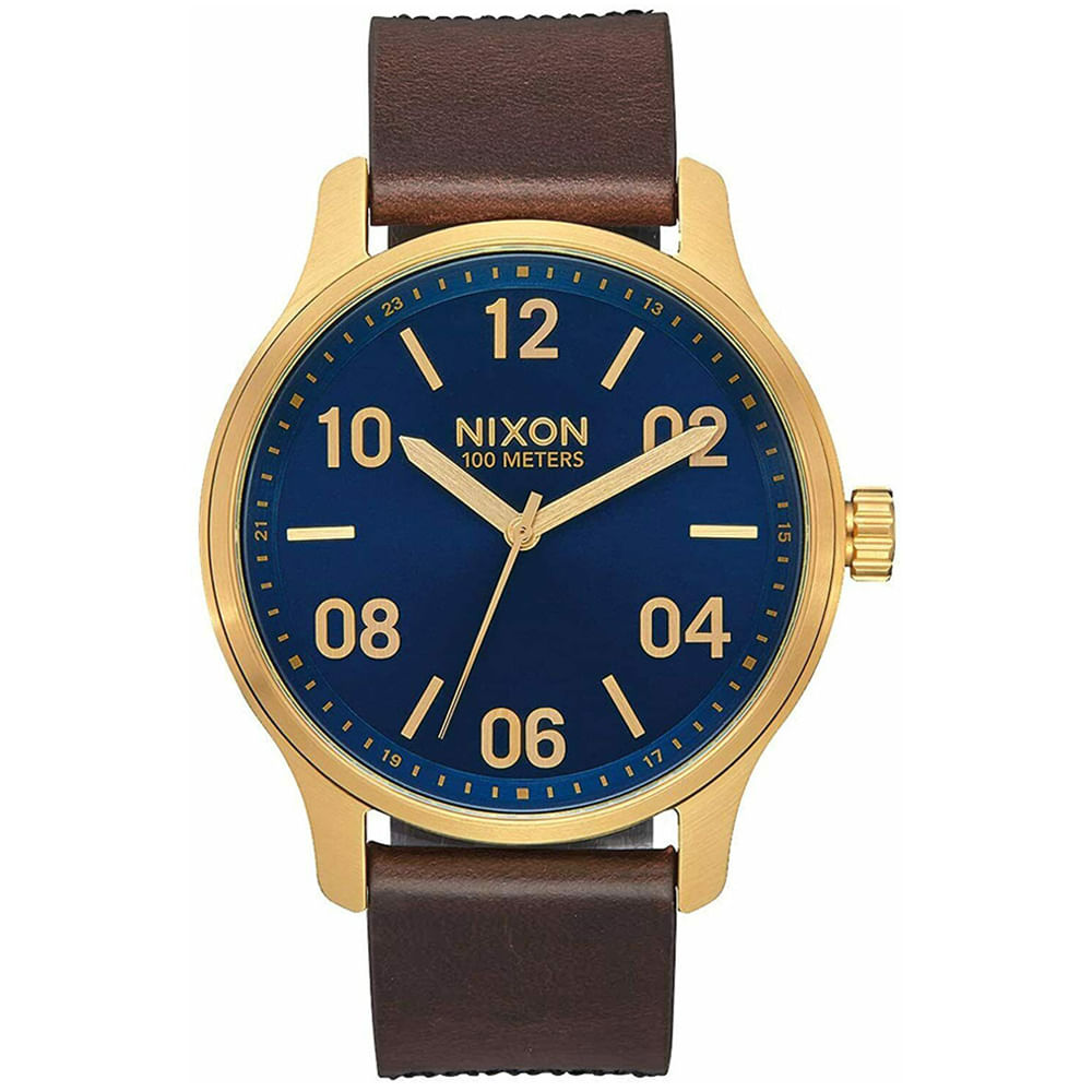 Reloj Nixon Patrol A12433210 Acero Inoxidable Correa de Cuero Marrón Dorado Azul