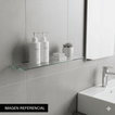 | Características | Repisa de 100% vidrio, frente perfilado para evitar daño en caso de impactos, sujetadores de metal que ayudan a sostener la repisa una vez que esté fijado a la pared. |