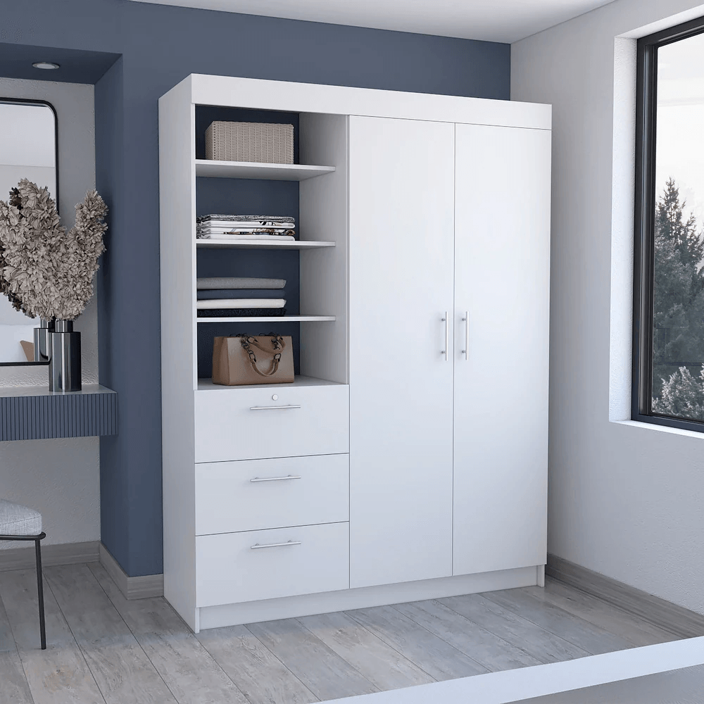 Ropero Moderno 2 puertas 3 cajones Mendez color Blanco TU MESITA