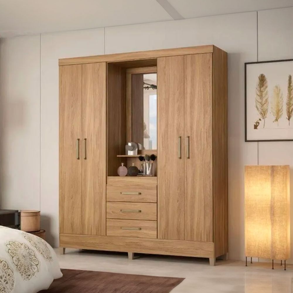 Ropero Porto 4 Puertas 3 Cajones Almendra