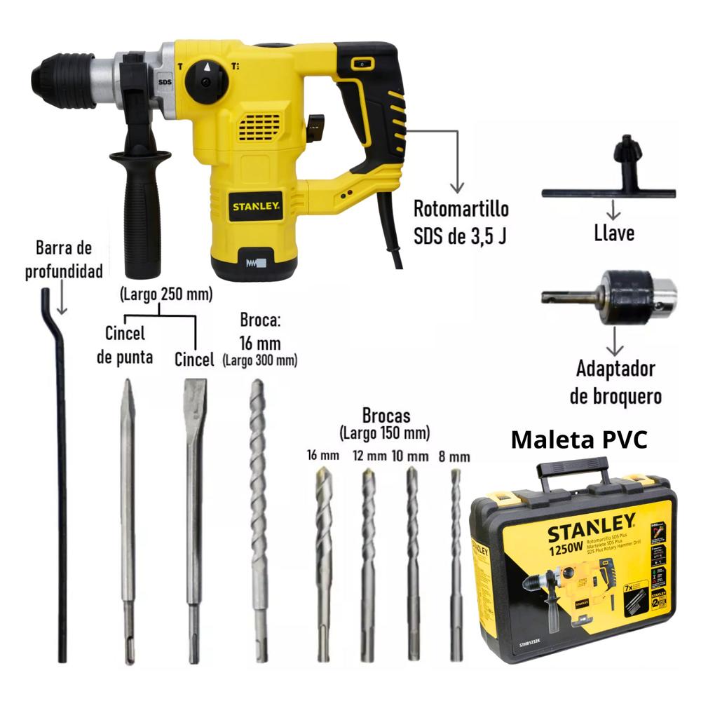 Rotomartillo SDS Plus Eléctrico 1250W Stanley maleta brocas cinceles