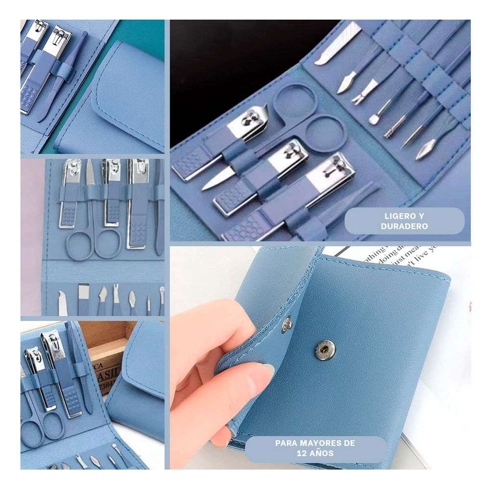 Set 12 piezas de Manicure con Cortauñas y Pinzas Celeste