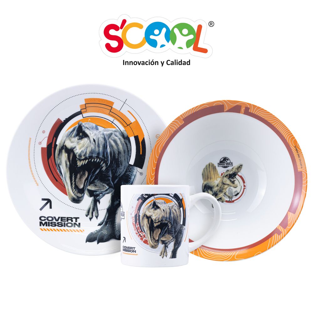 Set 3 Piezas Cerámica Plato + Bowl + Taza Jurassic