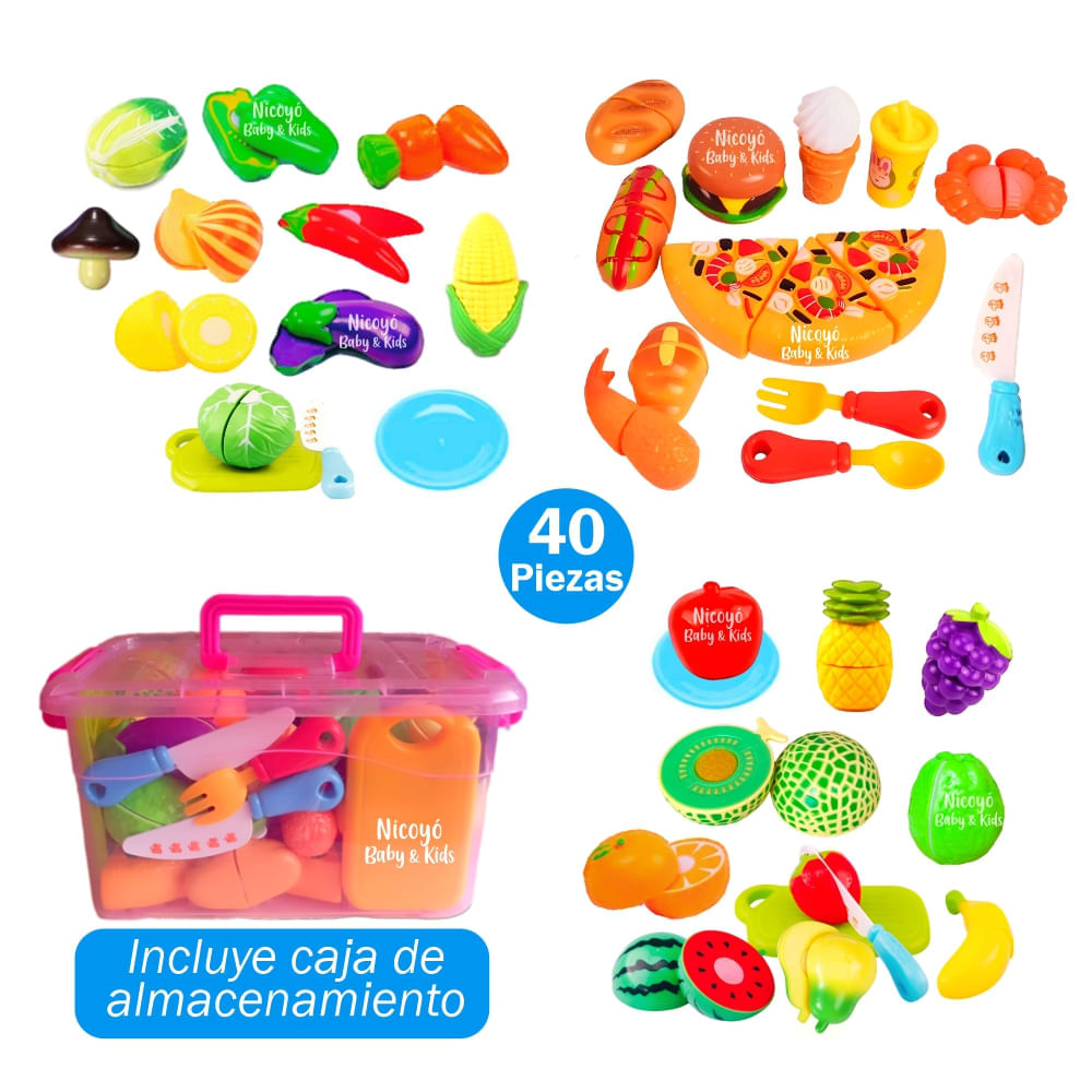 Set de 40 Alimentos para Cortar y Pegar con Caja Rosada