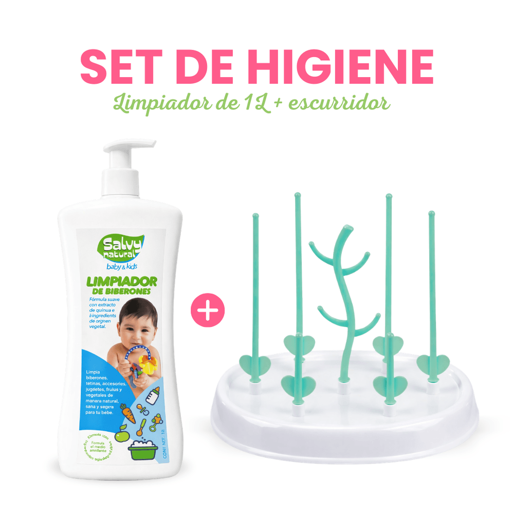 Set de Higiene para Bebé Salvy Natural 1lt con Escurridor