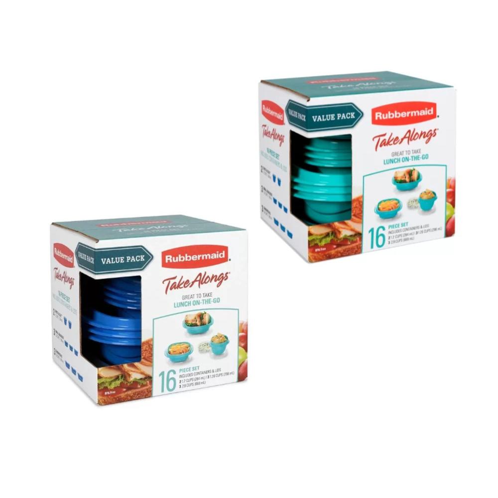 Set Hermeticos Rubbermaid TakeAlongs On The Go 16 Piezas Azul / Turquesa