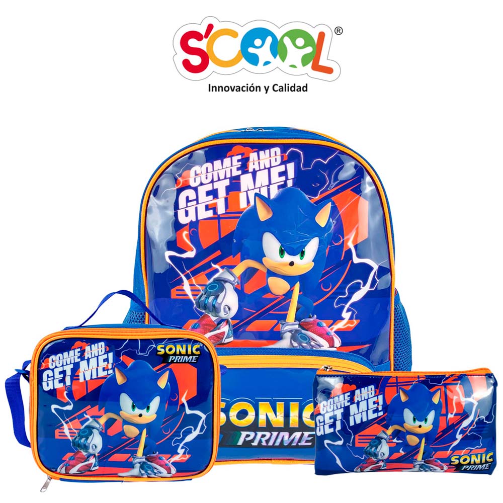 Set Mochila de Oficina Lonch Cartuchera Sonic SCOOL