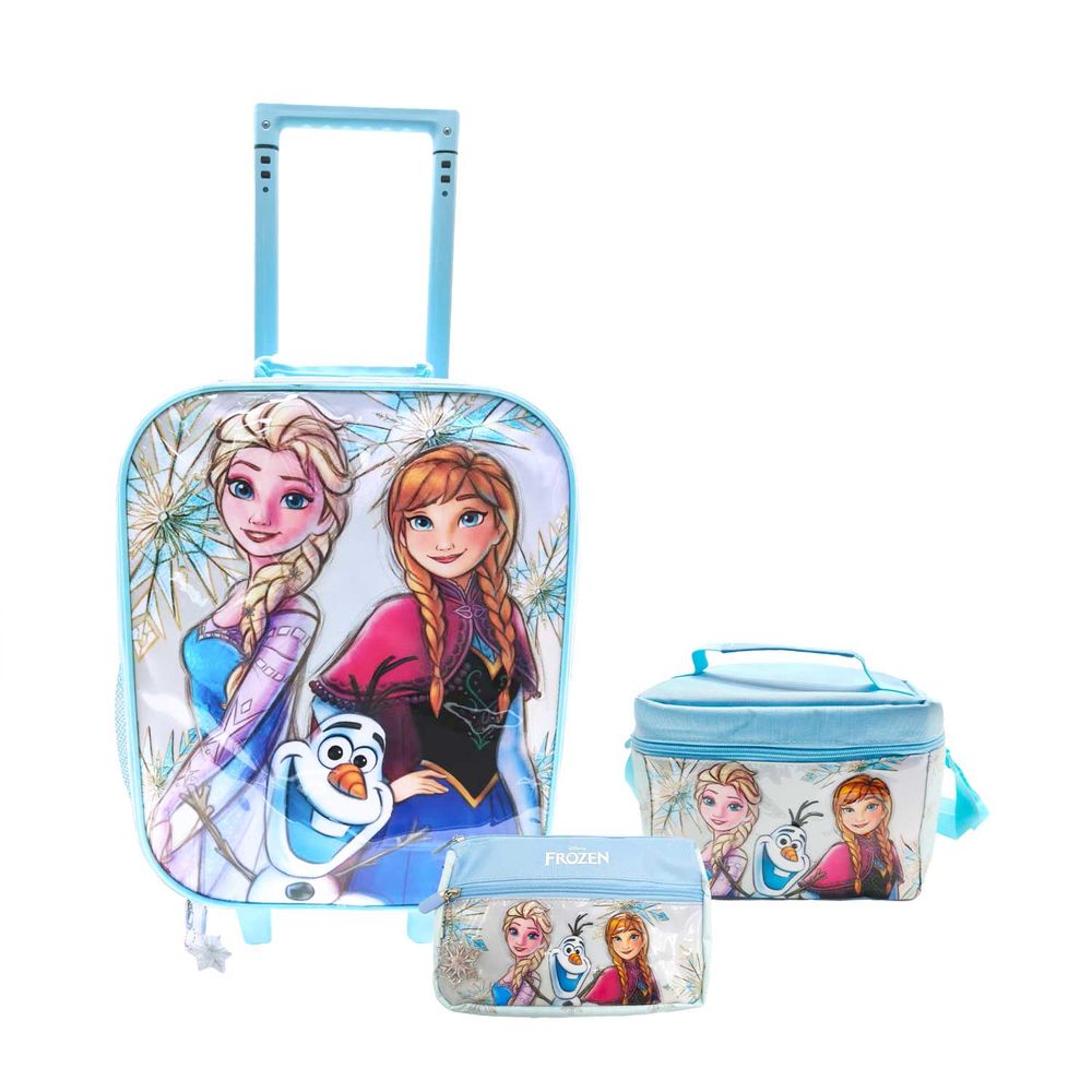 Set Mochila De Ruedas + Lonchera + Cartuchera Medium Disney Frozen