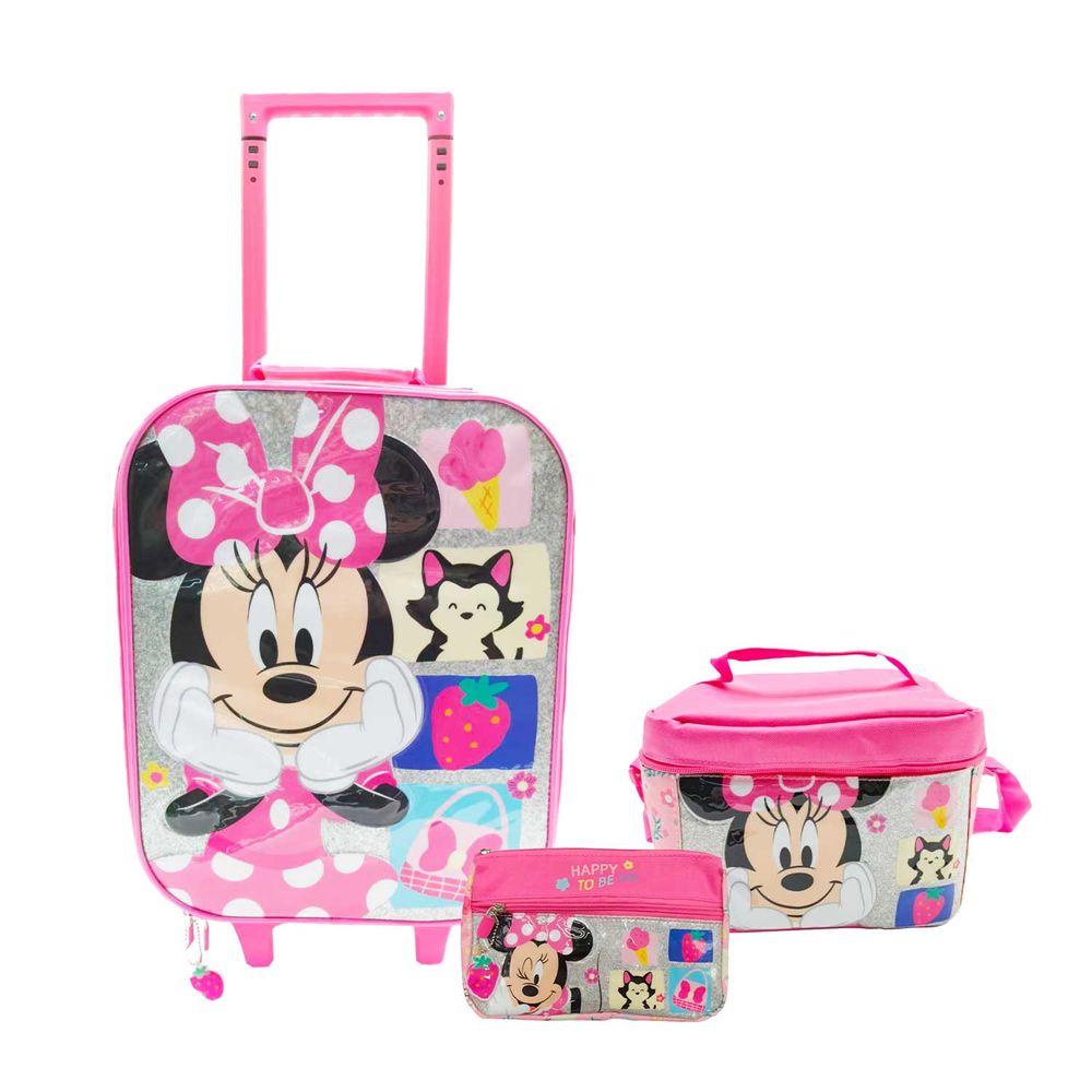 Set Mochila De Ruedas + Lonchera + Cartuchera Medium Disney Minnie
