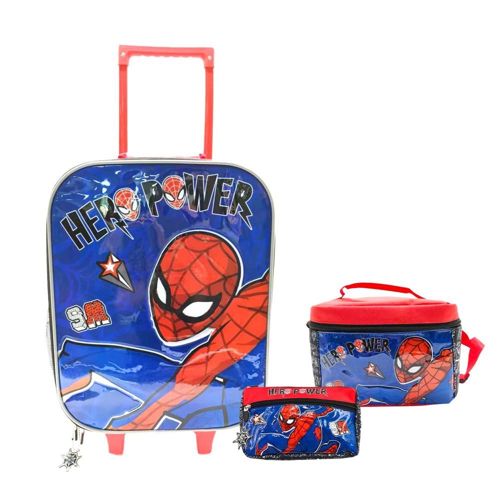 Set Mochila De Ruedas + Lonchera + Cartuchera Medium Marvel Spiderman
