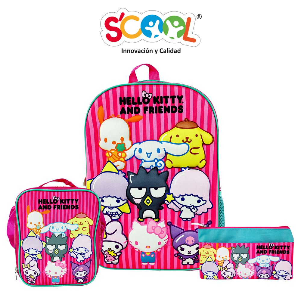 Set Mochila + Lonchera + Cartuchera Scool Hello Kitty Friends