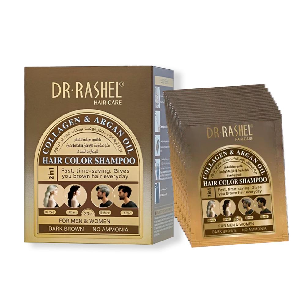Shampo 2En1 Colag y Aceite Argan Rashel Marrón Oscuro x 10 Sachets