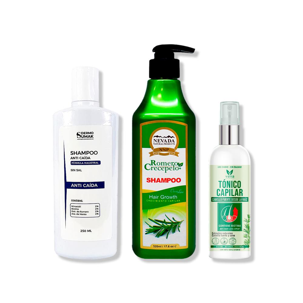 Shampoo Anticaida 250ml + Shampoo Romero 520ml + Tonico Capilar Romero