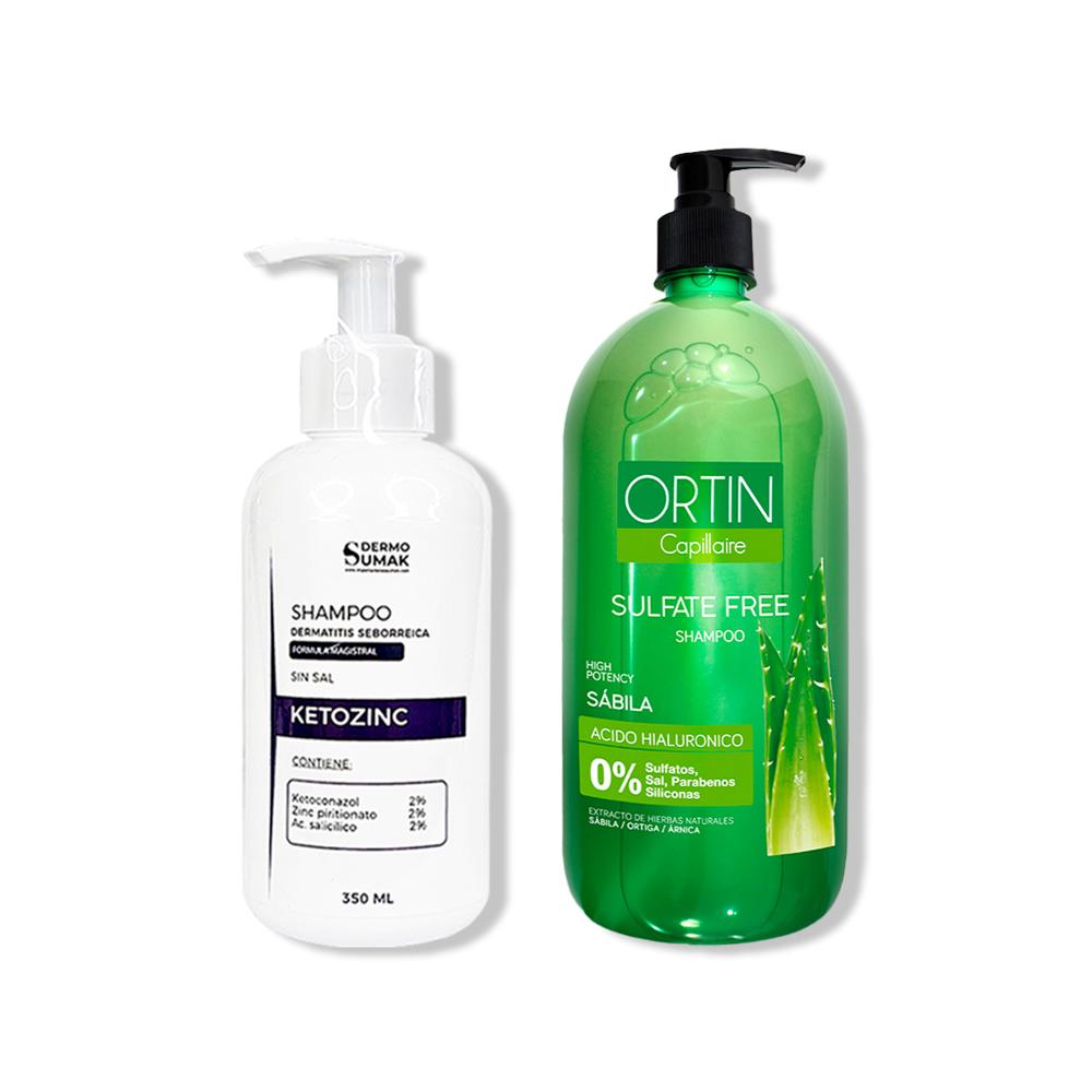 Shampoo Sin Sal Ketozinc 350ml+ Shampoo Ortin Sabila 1Lt
