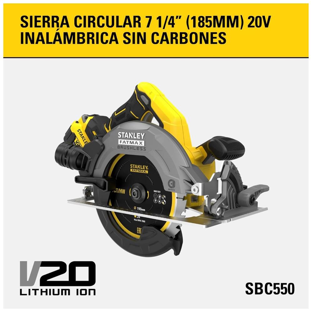 Sierra circular inalambrico 7 1/4" 20V BRUSHLESS 2 Baterias STANLEY