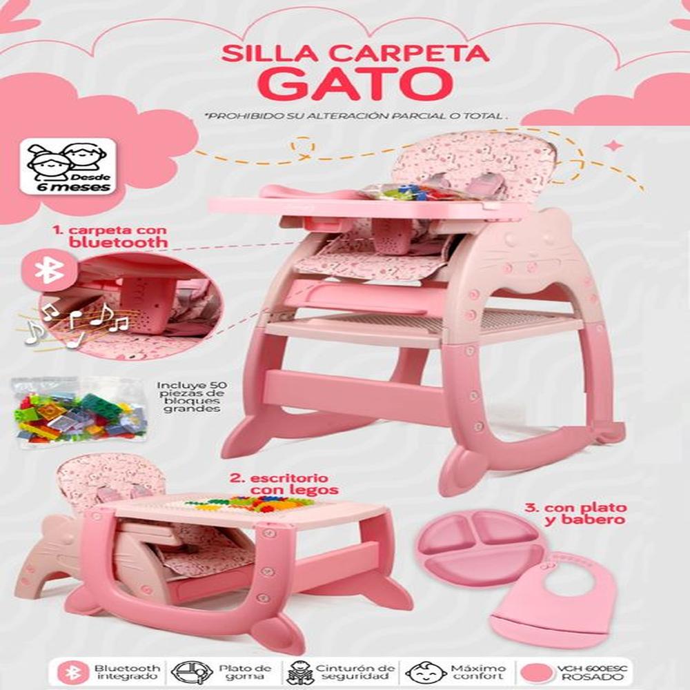 Silla Carpeta Bluetooth Lego Gato 3 en 1 -Rosa