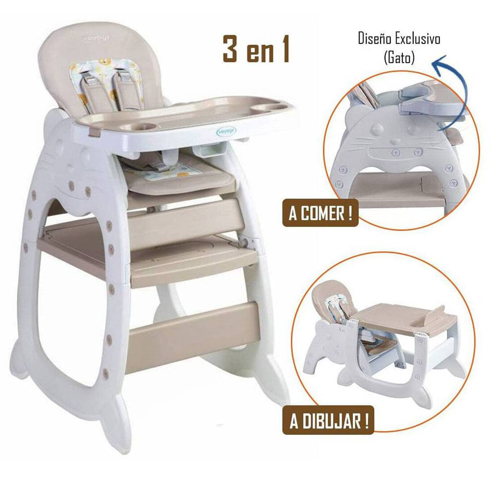 Silla de Comer Voyage Gato 3 en 1 Beige - Silla de Comer Para Bebe Voyage Gato 3 en 1 Beige