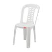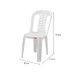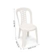 | Características | Silla de plástico color blanco con 4 patas, en la base de las mismas viene con regatones antideslizantes, asiento de plástico y respaldar del mismo material. No viene con posa brazos |