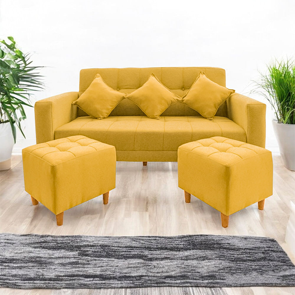 Sofá Bonn 3 Cuerpos con 2 Puffs Amarillo Movenda