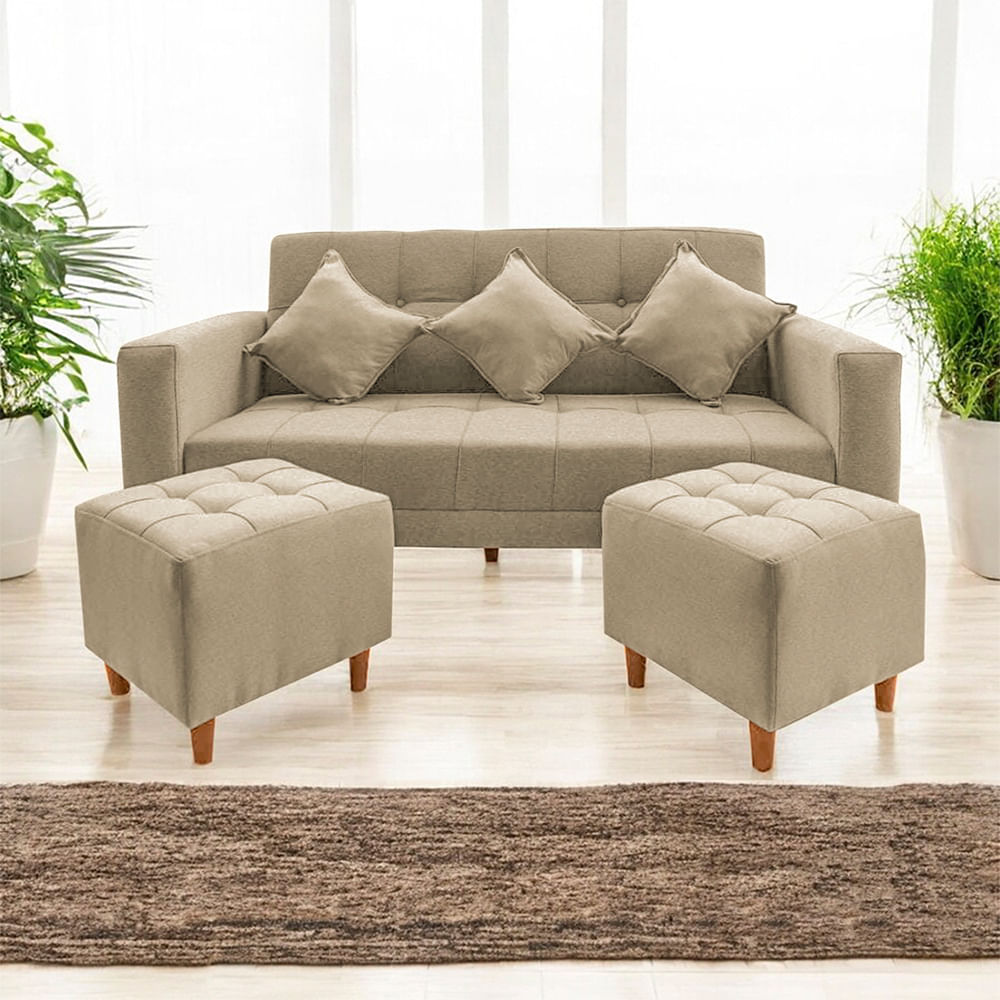 Sofá Bonn 3 Cuerpos con 2 Puffs Beige Movenda