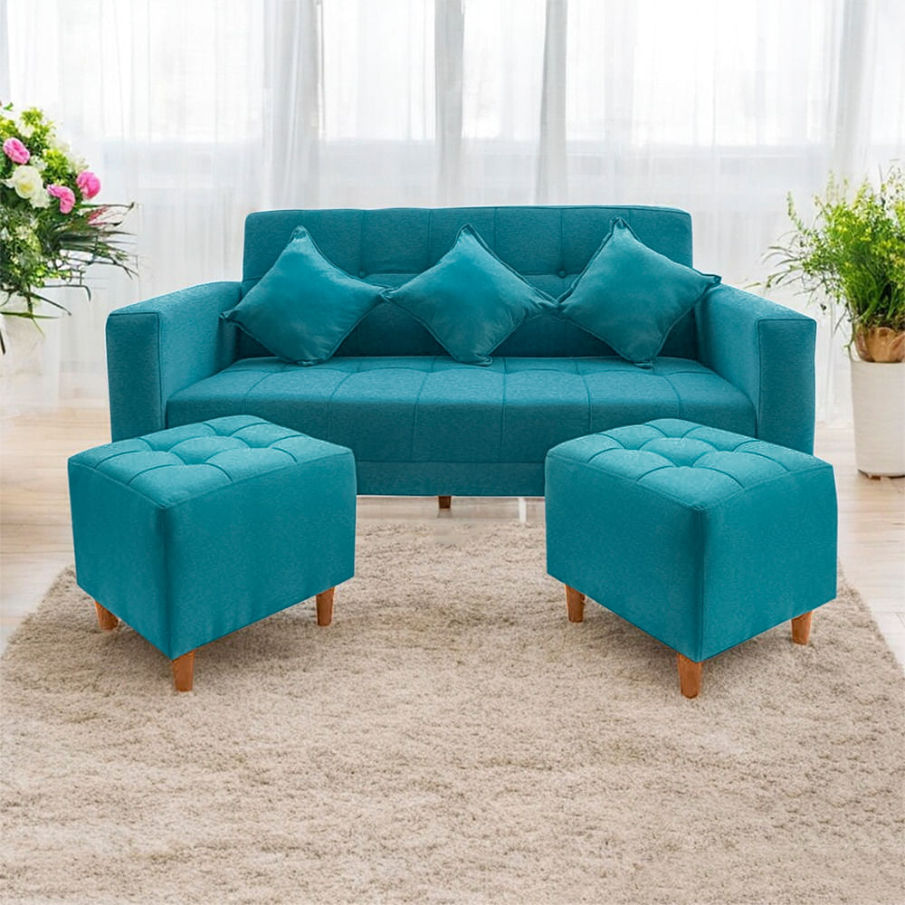 Sofá Bonn 3 Cuerpos con 2 Puffs Celeste Movenda