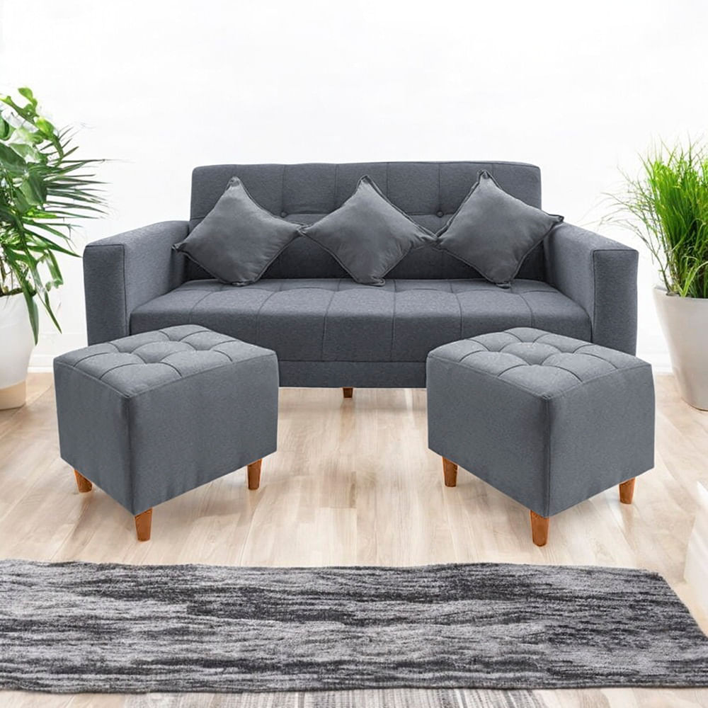 Sofá Bonn 3 Cuerpos con 2 Puffs Plomo Movenda