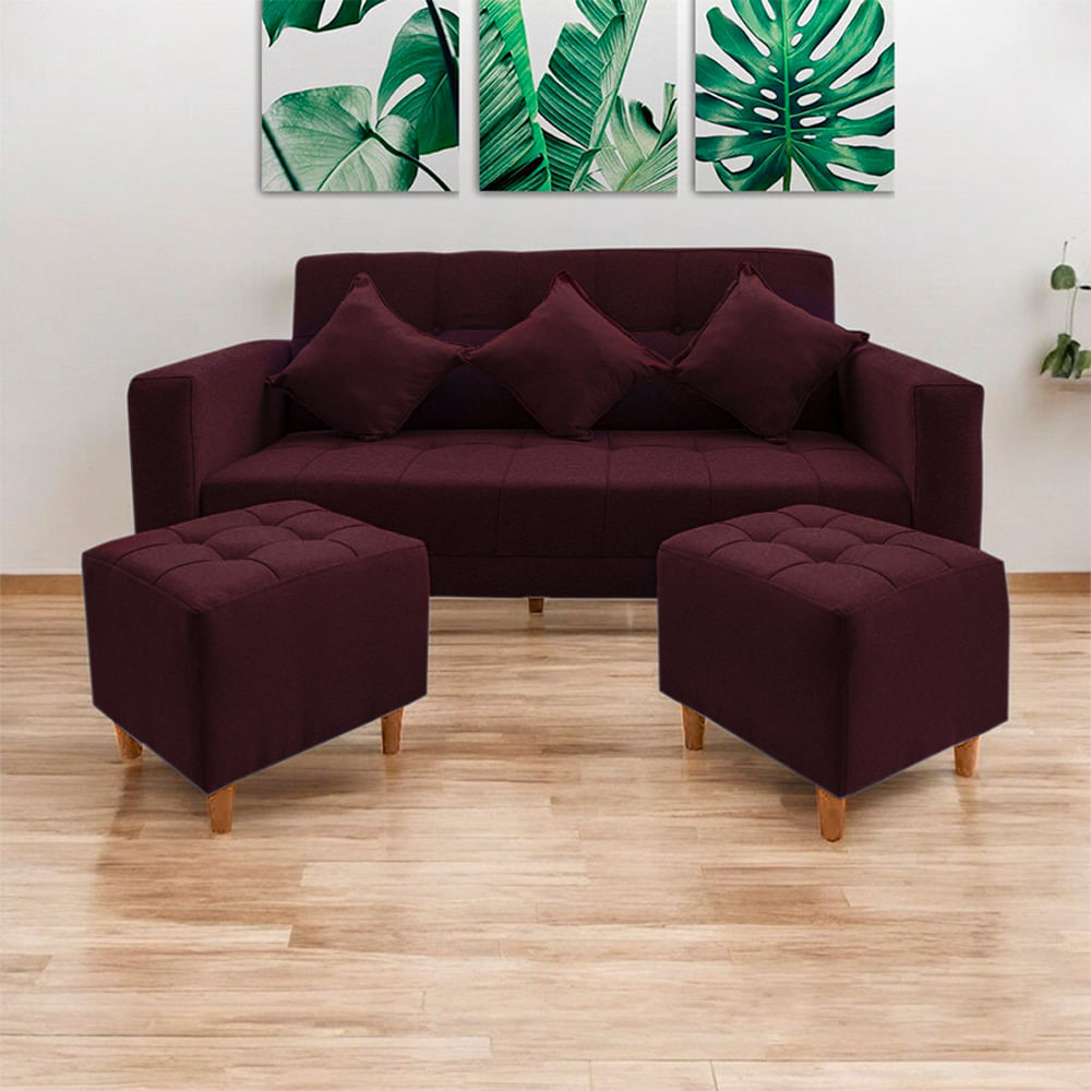 Sofá Bonn 3 Cuerpos con 2 Puffs Vino Movenda