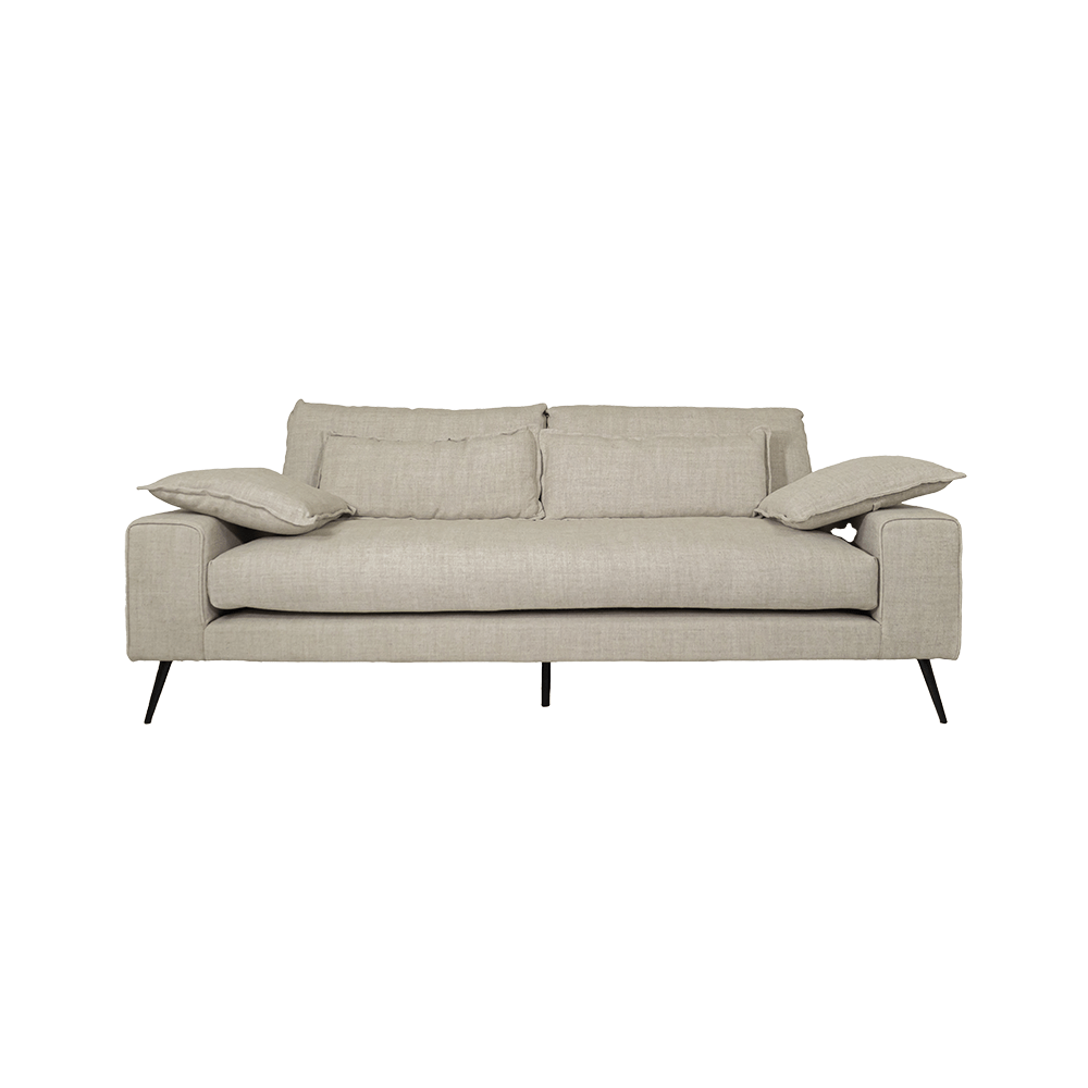 | Observaciones | Sofá Recto con relleno de Fibra sintética y Pluma Natural. Tela Beige de algodón 50% y Lino 50%, y desenfundables para fácil lavado. |