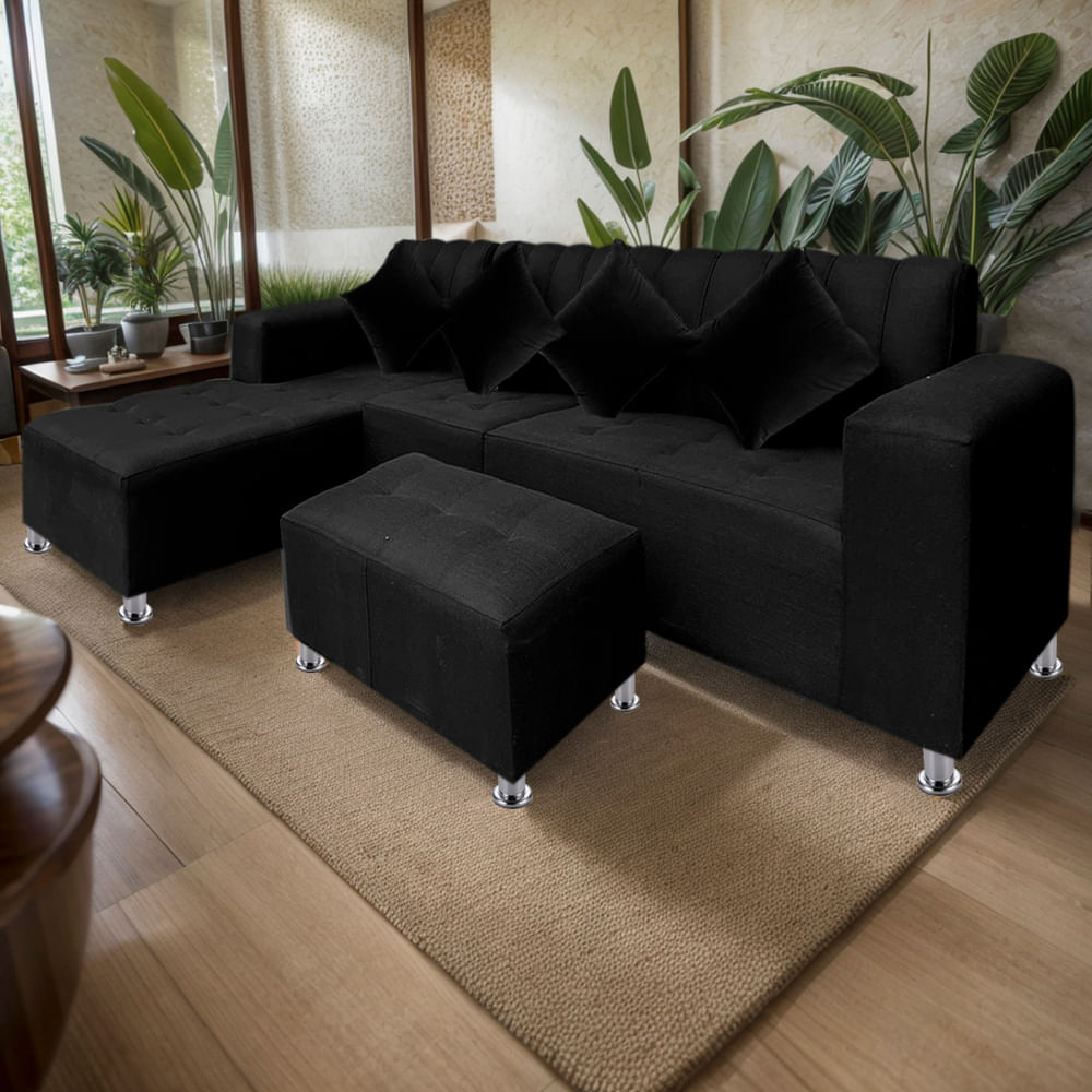Sofá Seccional Bremen 4 Cuerpos con Puff Negro Movenda