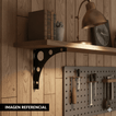 | Características | Escuadra para repisa hecho de metal pintado. Cuenta con 2 lados, uno para fijar a la pared y el otro para fijar la repisa, ambos extremos tienen perforaciones para colocar los tornillos y así adosar la escuadra, diseño moderno. |