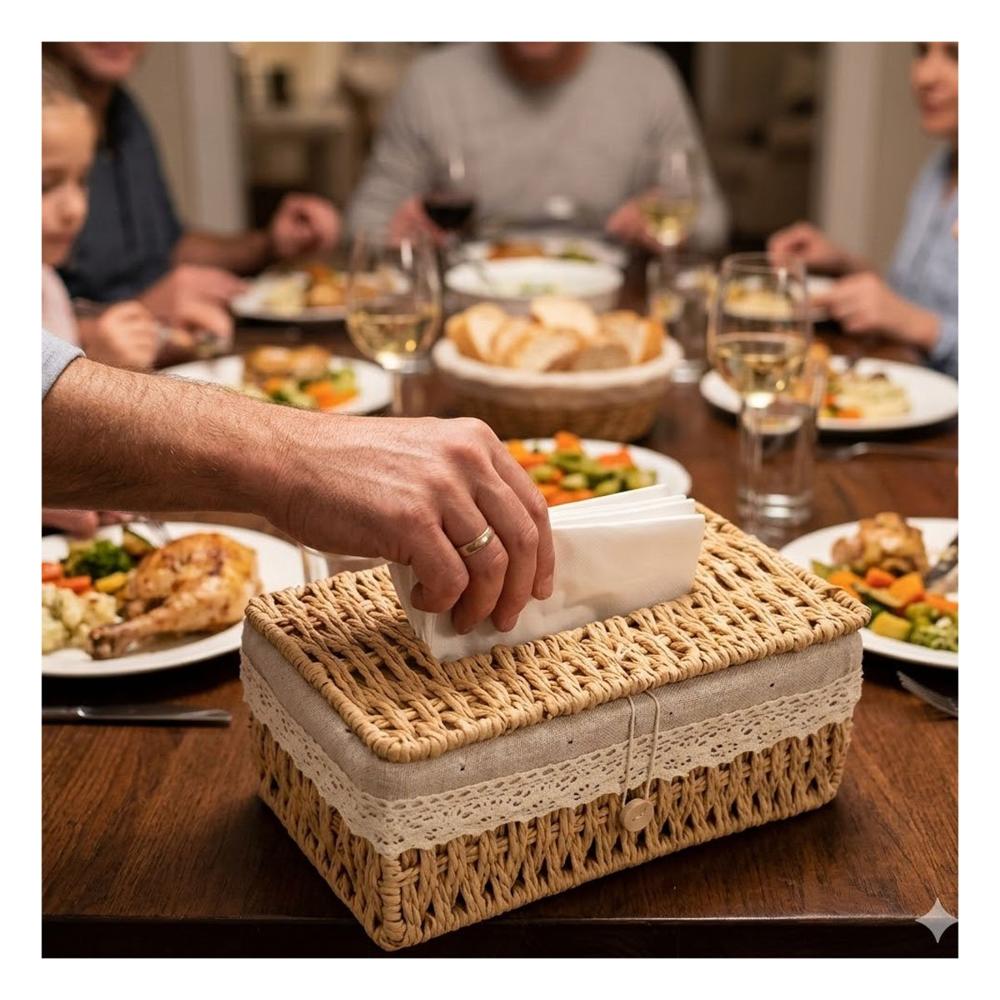 Soporte Servilletas Canasta Tejida con Forro Tela Beige 20x14x9cm Mesa Y+Papel Regalo