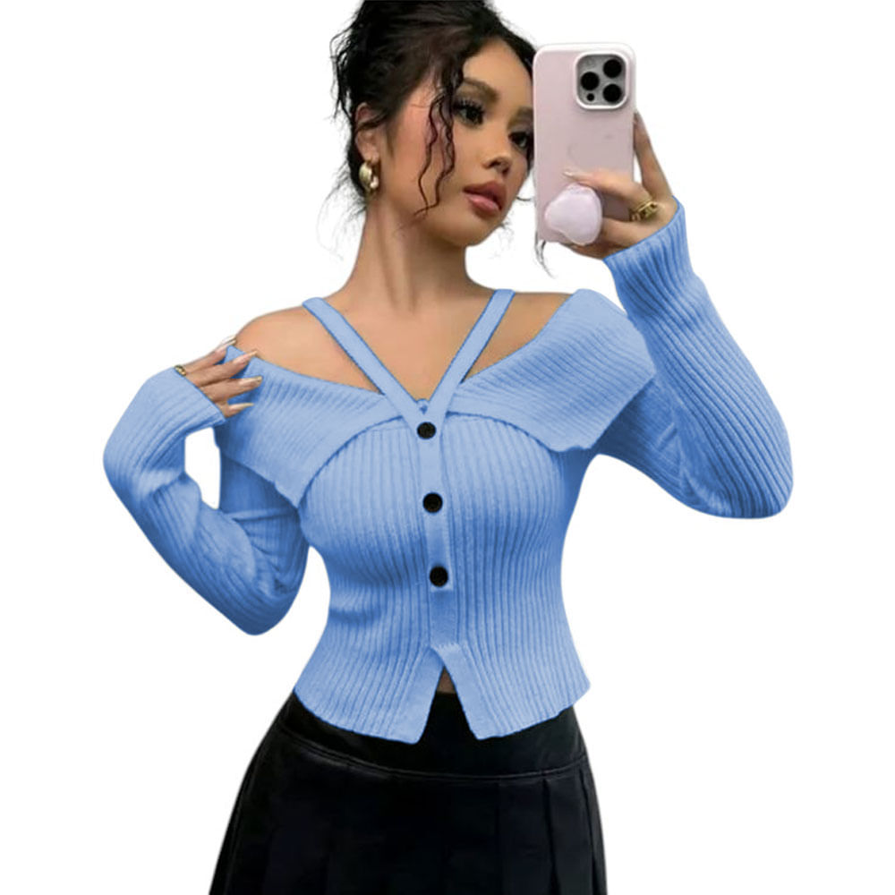 Sueter Mujer Hilo 3Botones 359G-26 Color Celeste