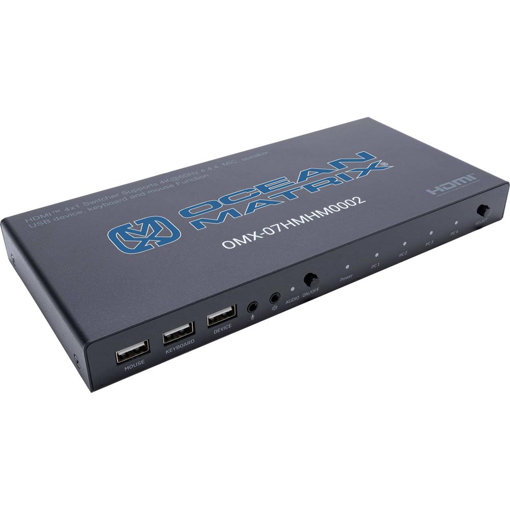 Switcher HDMI 4x1 Ocean Matrix UHD 4K 60 Hz con USB, Cambio por Teclado/Hotkey y Función de Micrófon