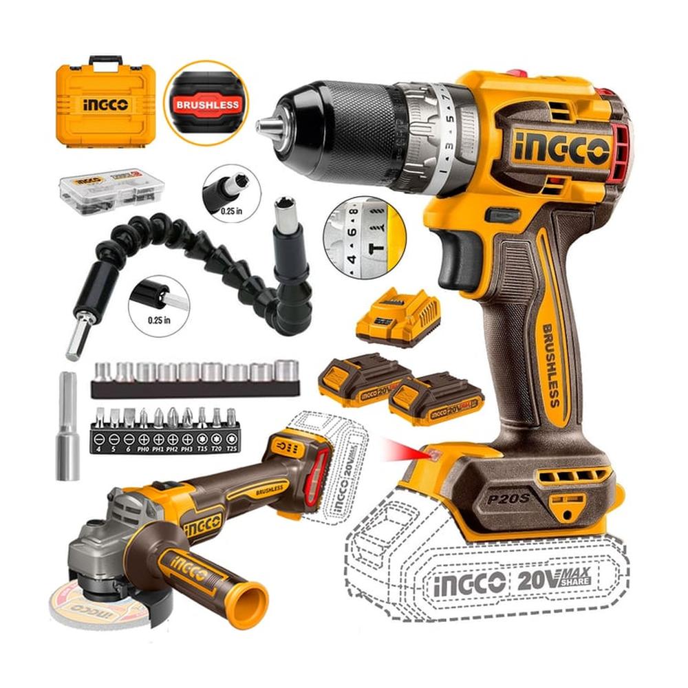 Taladro Percutor Brushless 20V + Amoladadora 20V Ingco