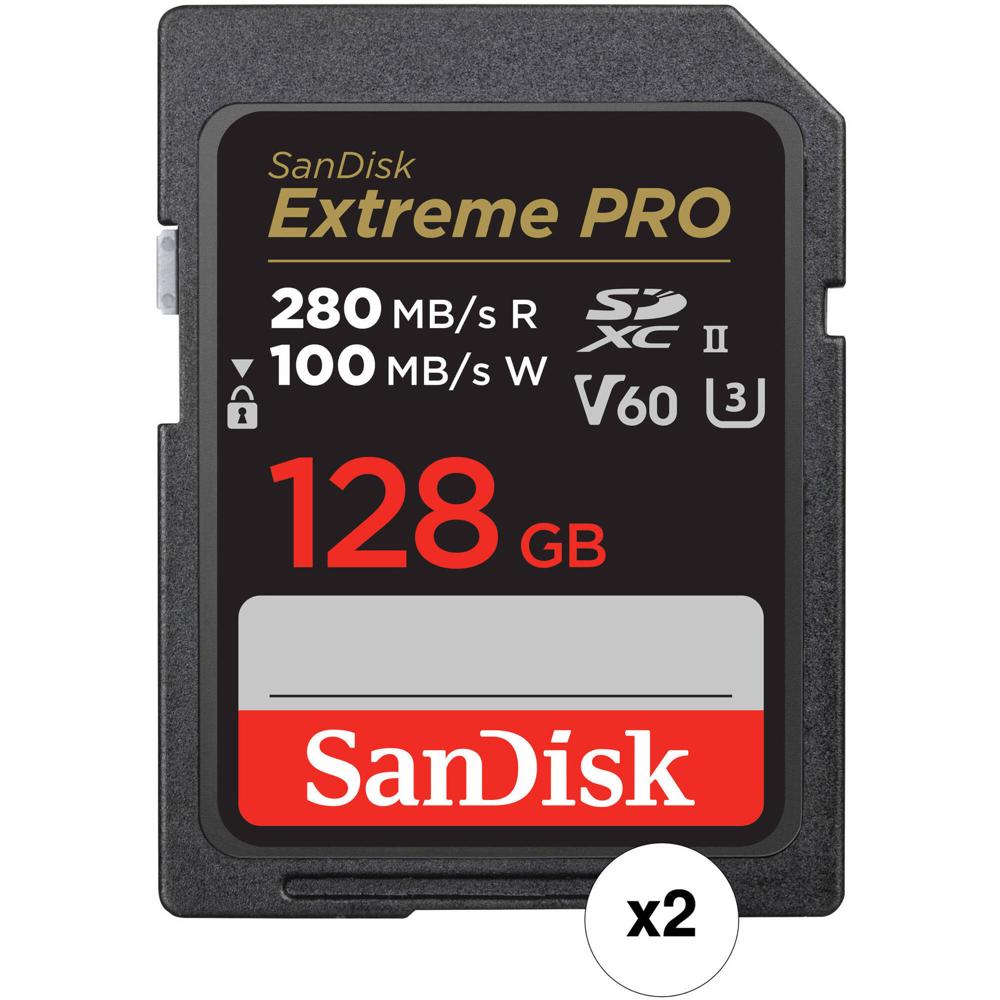 Tarjeta de Memoria SanDisk 128GB Extreme PRO UHS-II SDXC (Paquete de 2) - Velocidades de Lectura 280