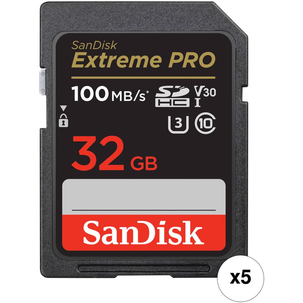 Tarjeta de Memoria SanDisk 32GB Extreme PRO UHS-I SDHC (Paquete de 5) - Velocidades de Lectura 100 M