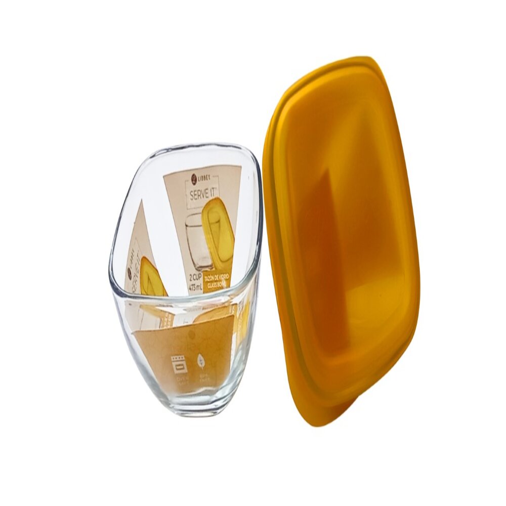 Tazón de vidrio 2 cup con tapa de plástico serve it