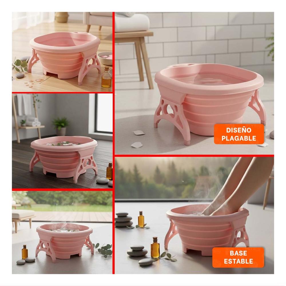 Tina Portatil con Masajeador de Pies Rosado para Relajacion y Hogar