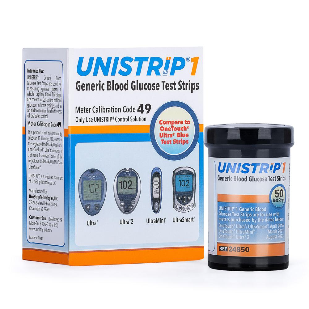 | Características | Tiras para glucosa capilar, compatibles OneTouch Ultra, código 49, uso con solución UNISTRIP y empaq |